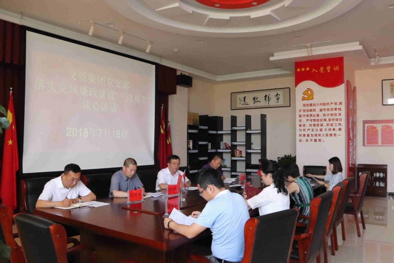 7月18日,交資集團公司黨支部組織開展了落實黨風廉政建設“一崗雙責”集體談心談話活動,黨支部領導班子全體成員參加了本次活動。