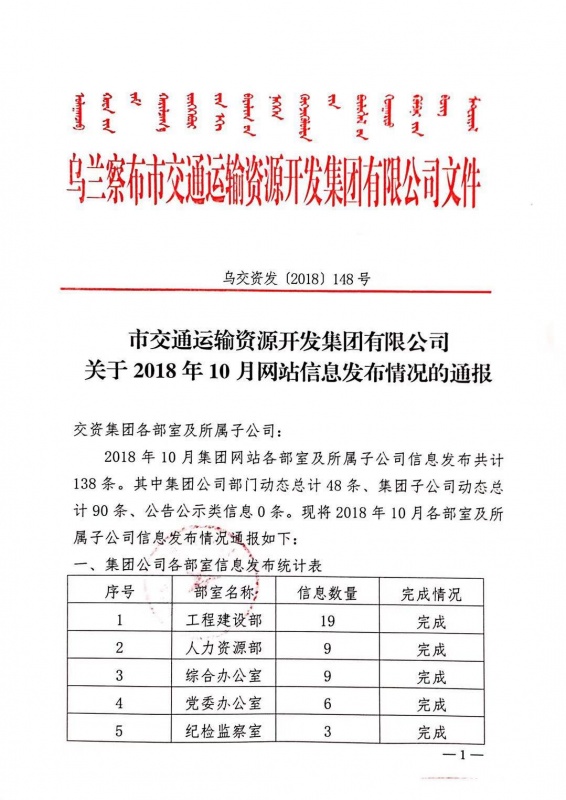2018年10月網站信息發(fā)布情況的通報