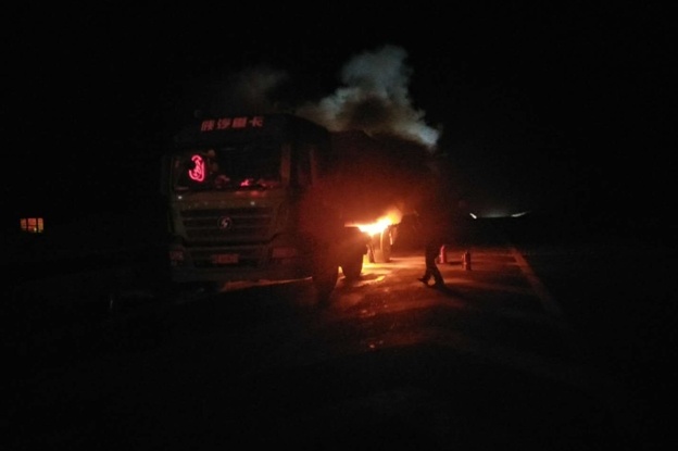 10月16日凌晨12時(shí)20分左右,一輛大貨車經(jīng)過(guò)運(yùn)煤專線90公里處梅力蓋圖收費(fèi)站時(shí),突然在車道口發(fā)生自燃,整個(gè)車輛有被大火吞噬危險(xiǎn)。這一幕正好被在收費(fèi)崗?fù)ね庋膊榈氖召M(fèi)班長(zhǎng)郭俊龍發(fā)現(xiàn),意識(shí)到情況不妙,他立即通知值班站長(zhǎng),站長(zhǎng)啟動(dòng)應(yīng)急預(yù)案,迅速組織員工利用滅火器展開滅火救援,同時(shí)向119消防指揮中心報(bào)警,對(duì)相鄰的車道實(shí)施臨時(shí)交通管制,維護(hù)現(xiàn)場(chǎng)秩序,以確保現(xiàn)場(chǎng)人員和過(guò)往司乘人員人身安全。收費(fèi)站工作人員和交警共同努力在第一時(shí)間控制了火勢(shì),等待消防隊(duì)進(jìn)行2次處理,在梅力蓋圖收費(fèi)站工作人員與當(dāng)?shù)叵啦块T及交警的共同配合與妥善處置下,未造成人員傷亡。 隨后將事故現(xiàn)場(chǎng)清理干凈,引導(dǎo)車輛有序通行,車道恢復(fù)暢通。