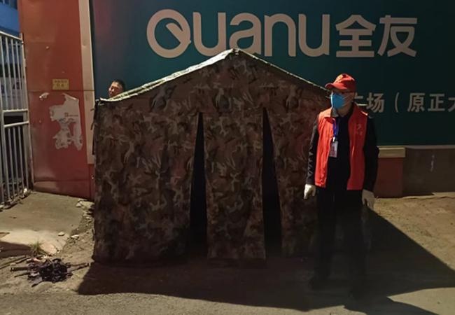 暖心帳篷的搭建,改善了一線人員的工作環(huán)境,幫助值班值守人員抵御低溫寒冷天氣,確保小區(qū)值守工作有序進(jìn)行。