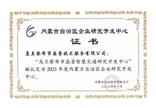 近日,內(nèi)蒙古自治區(qū)科學(xué)技術(shù)廳公布了《內(nèi)蒙古自治區(qū)2023年度企業(yè)研究開發(fā)中心備案名單》,“烏蘭察布市晶普智慧交通研究中心”成功上榜,被認(rèn)定為自治區(qū)企業(yè)研究開發(fā)中心。